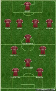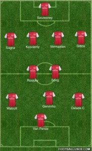 ARSENAL: Szczesney, Sagna, Vermaelen, Koscielny, Gibbs, Rosicky, Song, Walcott, Gervinho, Oxlade-Chamberlain, Van Persie.