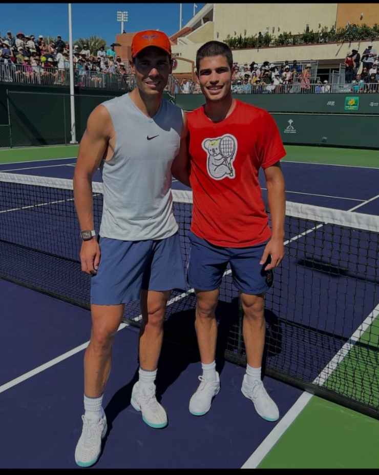 L’immagine in questione ritrae i due spagnoli insieme, ad Indian Wells, dove tra poche ore sia Carlos che Rafael inizieranno a duellare per portare a casa l’ambitissimo premio da mille punti in palio nel torneo che si tiene nel deserto californiano.