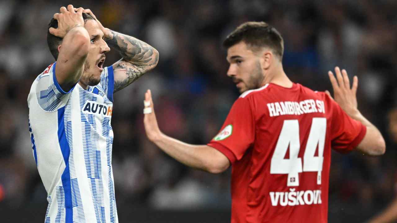 Nel match dell’Olympiastadion contro ogni pronostico hanno prevalso gli ospiti, battendo con il risultato di 0-1 i padroni di casa dell’Hertha Berlino – allenati dalla loro ex bandiera Felix Magath – che adesso rischiano di trovarsi al piano di sotto dopo dieci anni esatti dall’ultima volta. Sono a un passo dal precipizio Tousart e compagni. Giovedì scorso l’Hertha ha sprecato tanto nel primo tempo, l’ex interista Belfodil si è visto annullare un gol e ad inizio ripresa è passato in svantaggio su un fortunoso episodio: è stato Ludovit Reis l’autore del pallonetto che ha beffato il portiere dei berlinesi Christensen e che consente all’Amburgo di giocare per due risultati su tre nella gara di ritorno. Gli anseatici hanno dimostrato di potere tenere testa ad un avversario di categoria superiore e ora sognano di rimettere piede in Bundesliga dopo quattro anni. L’Amburgo infatti non è più riuscito a tornare in massima serie dopo la storica retrocessione del 2017-18, la prima in assoluto della storia del club. Diverse le modifiche che opererà l’esperto tecnico Magath nella formazione iniziale che in un Volksparkstadion tutto esaurito si giocherà il tutto per tutto.