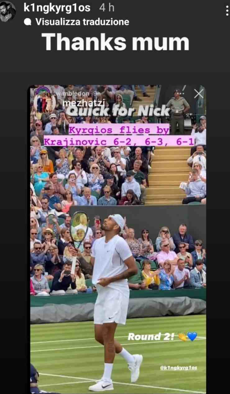 Nello stesso giorno in cui ha scoperto di essere stato multato per quello sputo, Kyrgios ha confermato ancora una volta di avere intenzioni serissime con la sua fidanzata. Ha ricondiviso su Instagram un post tramite il quale la madre di Costeen “pubblicizzava” la sua vittoria su Krajinović, aggiungendo la didascalia “Grazie mamma“. Un’abitudine tutta europea, quella di chiamare mamma e papà i propri suoceri in segno di grande rispetto, e che evidenzia la sua volontà di andare fino in fondo e di portare all’altare la ragazza che gli ha fatto perdere la testa.