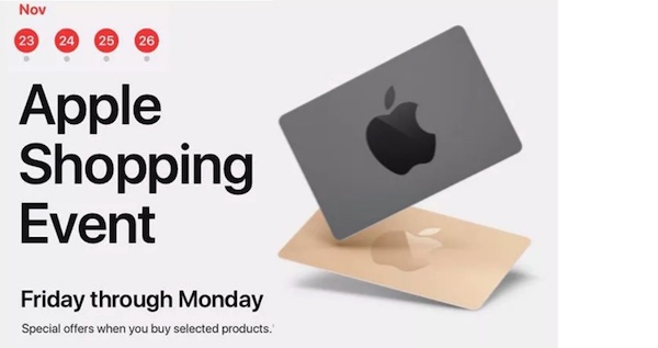 Anche il negozio ufficiale di Apple propone una serie di offerte per il Black Friday, dal 23 al 26 novembre: come già l'anno scorso, anche quest'anno dovrebbe trattarsi di gift card in regalo con l'acquisto di alcuni articoli. Il valore del buono cresce a seconda dell'importo speso ma la promozione non si applica agli ultimissimi modelli. Riguarda comunque vari modelli di iPhone, iPad, Apple Watch, Mac e altro.