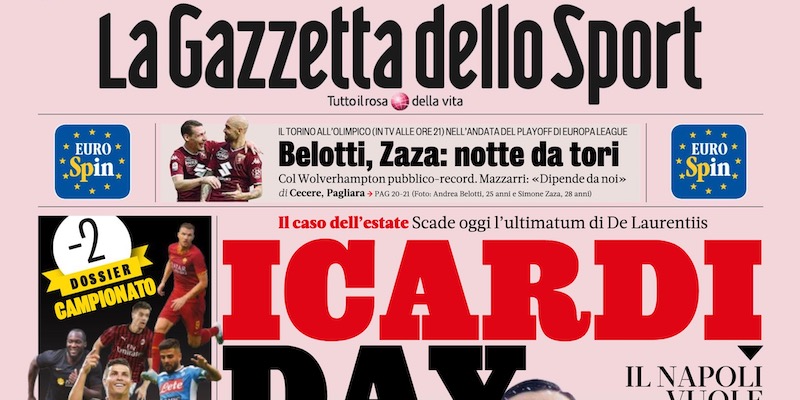 Le prime pagine dei principali quotidiani sportivi italiani di oggi sono dedicati all’inizio atipico dell’ultima giornata di Serie ... Leggi tutto