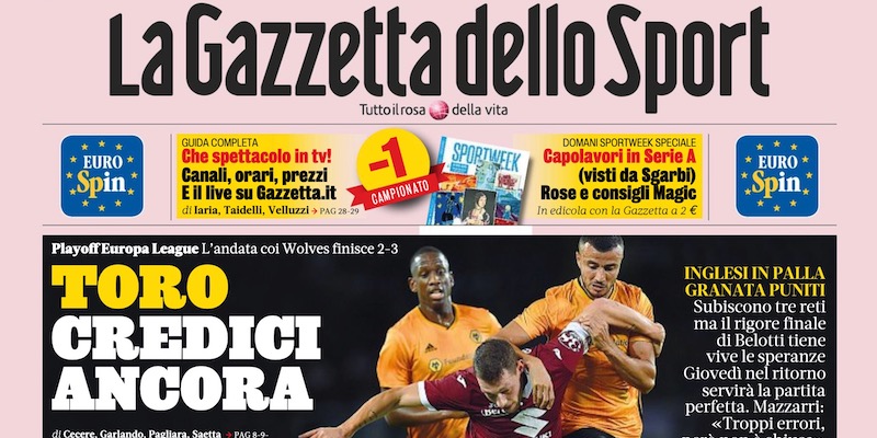 I risultati di Europa League, con la qualificazione della Roma e l'eliminazione della Lazio, oggi sui quotidiani sportivi.
