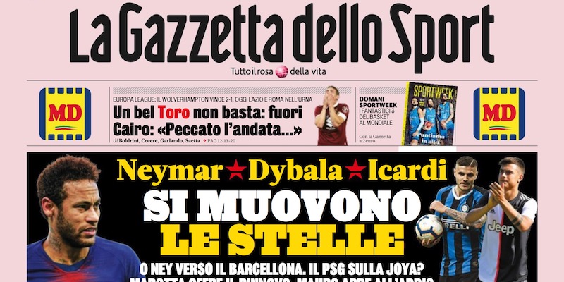 Le prime pagine sportive di oggi, giovedì 19 dicembre