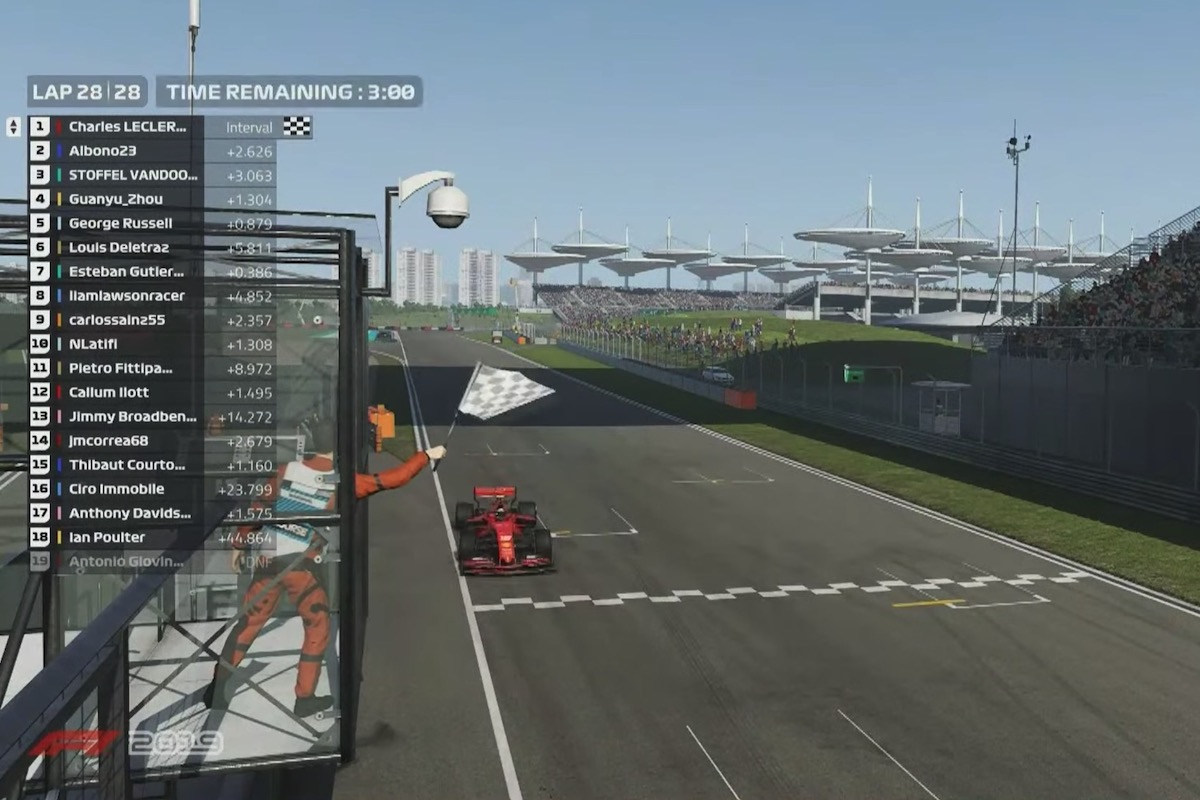 Il pilota della Ferrari ha vinto il secondo Gran Premio virtuale consecutivo, sulla pista cinese di Shanghai, dopo una bella sfida con Albon.