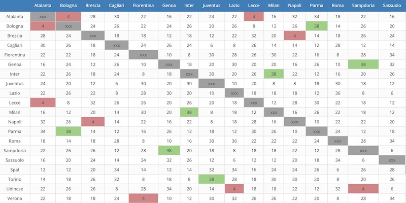 La griglia con i portieri di Serie A 2019-2020, composta in base all'alternanza casa/trasferta delle squadre per cui giocano.