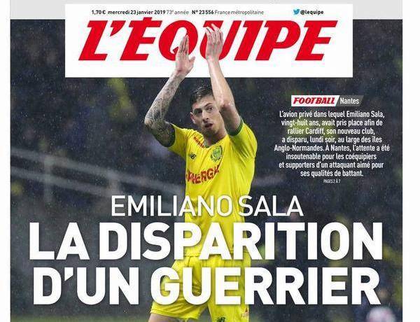 Molti quotidiani internazioniali aprono con la scomparsa dell'aereo turistico con a bordo Emiliano Sala durante un volo sulla Manica.