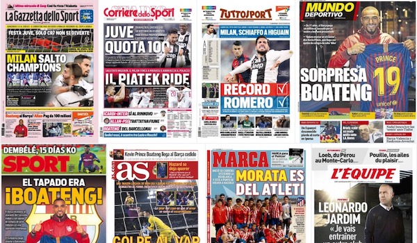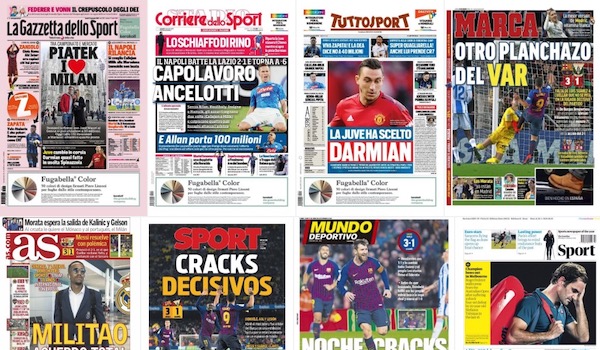 Le prime pagine sportive di oggi, in Italia e in Europa