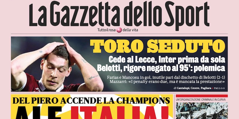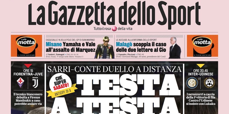 Le ultime sulla terza giornata del campionato di Serie A e poco altro, sulle prime pagine dei quotidiani sportivi di oggi.