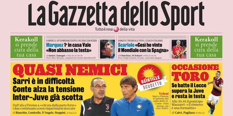 Le prime pagine sportive di oggi, martedì 17 settembre