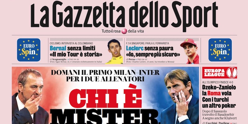 Le ultime sul derby Milan-Inter e sulle altre partite della quarta giornata di Serie A, oggi sui giornali sportivi.