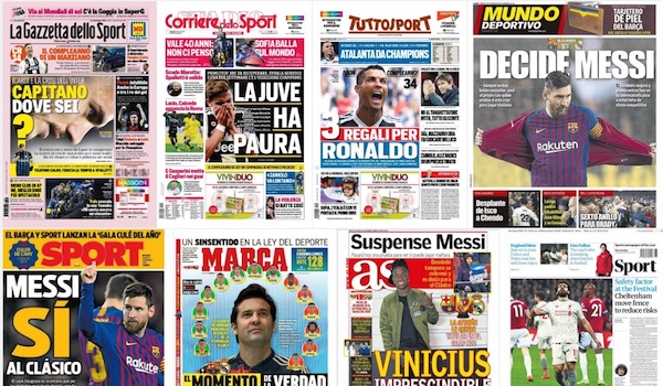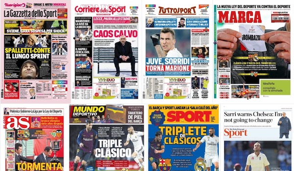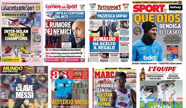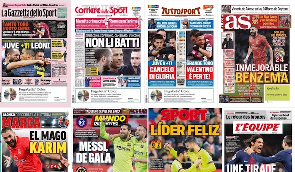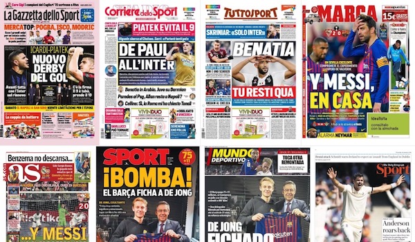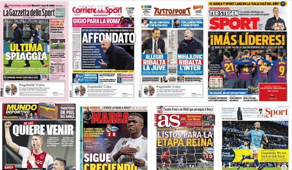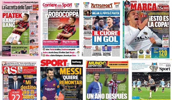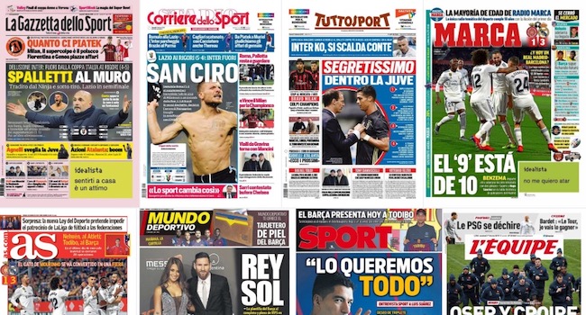 Le prime pagine sportive di oggi, in Italia e in Europa