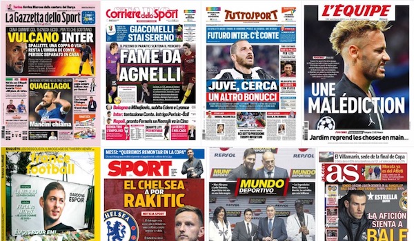 Dalla rassegna stampa dei giornali sportivi di martedì 29 gennaio 2019: “Vulcano Inter”, “Fame da Agnelli”, “Futuro Inter: c'è Conte”.