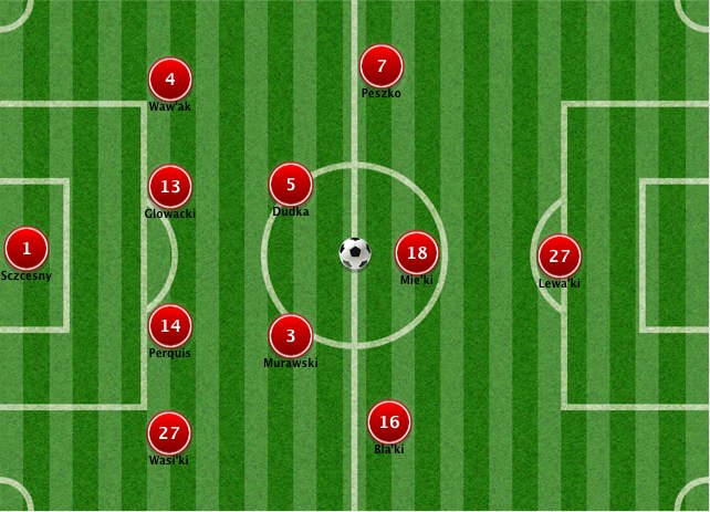 La Polonia sarà insieme all’Ucraina la nazionale ospitante dei prossimi europei. Il lavoro del ct Franciszek Smuda, in carica dal 29 ottobre del 2009, è stato un progetto a lungo termine, finalizzato a presentare una squadra competitiva per questa importante manifestazione. Sarà davvero così? Non proprio. Nonostante qualche buona individualità, la Polonia in una competizione come l’Europeo rischia di uscire già nella fase a gironi. La squadra gioca con un 4-5-1 mascherato da 4-2-3-1. Il 4-5-1 della Polonia In fase difensiva anche i giocatori sulla trequarti danno una mano, mentre i mediani di schermo davanti alla retroguardia restano sempre molto bassi. Il giovane portiere dell’Arsenal Szczesny è uno dei punti di forza, ma la difesa – sia nei singoli che nel complesso – è di basso profilo, come sottolineano i cinque gol subiti nelle ultime quattro sfide, tra l’altro tutte amichevoli. Sulla trequarti un altro elemento di spicco è Blaszczykowski, del Borussia Dortmund, come il pericolosissimo attaccante Lewandowski. Il trio giallonero viene completato dall’esterno Lukasz Piszczek: si tratta dei tre giocatori di movimento più forti in nazionale.