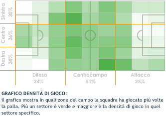 Come si può notare dai grafici riportati, sia il Napoli che la Juventus attaccano soprattutto dalla parte destra del campo. Il Napoli punta tutto sull’accoppiata Maggio-Lavezzi (o Hamsik), la Juventus su Vucinic. Ma le azioni nascono diversamente. Se i partenopei spesso tendono a finalizzare con repentini cambi di gioco, rivolti a favorire gli inserimenti dei due giocatori sopra citati, nella Juventus la manovra è diversa. Si parte sempre dai piedi di Pirlo, e la maggiore insistenza sulla parta destra è per sfruttare l’abilità nell’uno contro uno di Vucinic, che oltre a concludere direttamente spesso confeziona assist al bacio (con o senza l’apporto delle sovrapposizioni del sempre puntuale Lichsteiner) per Marchisio e Pepe che arrivano come treni dall’altra fascia convergendo verso il centro.