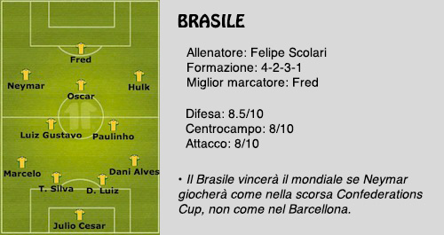 Il Brasile ha la squadra più forte, ma giocherà la prima partita contro la Croazia, che è l’avversario più difficile. Il Brasile giocò la sua prima partita del Mondiale contro la Croazia nel 2006, e vinse 1-0 con gol di Kakà. Dal 1982 in poi è riuscito a qualificarsi alla fase successiva dopo appena due partite, molto probabilmente lo farà anche stavolta e vincerà il girone. Il Brasile ha già giocato una volta anche contro il Camerun al Mondiale, vincendo 3-0, e nelle tre volte in cui ha giocato contro il Messico ha sempre vinto segnando complessivamente 11 gol senza subirne. Contro il Messico il Brasile ha vinto anche nella scorsa Confederations Cup, vendicando la sconfitta nella finale olimpica del 2012.