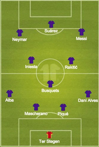 BARCELLONA (4-3-3): Ter Stegen; Alves, Piqué, Mascherano, Jordi Alba; Busquets, Iniesta, Rakitić; Neymar, Messi, Suárez.