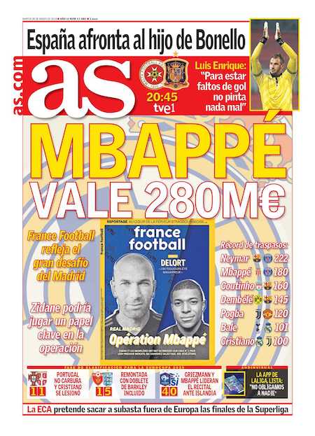 Il giornale francese France Football avvalora infine un’ipotesi di calciomercato lungamente suggerita dai quotidiani spagnoli vicini alle cose del Real Madrid. L’ipotesi sarebbe quella dell’acquisto di Kylian Mbappé da parte del Real per la prossima stagione.