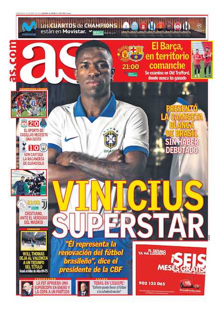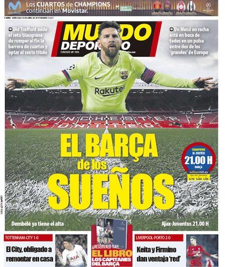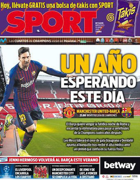 Le prime pagine sportive internazionali sono dedicate alle altre partite dei quarti di Champions League. Quelle catalane scrivono di Manchester United-Barcellona, in programma stasera all’Old Trafford. Il Barcellona è la squadra largamente favorita per il passaggio del turno ma la partita di andata potrebbe essere più equilibrata.