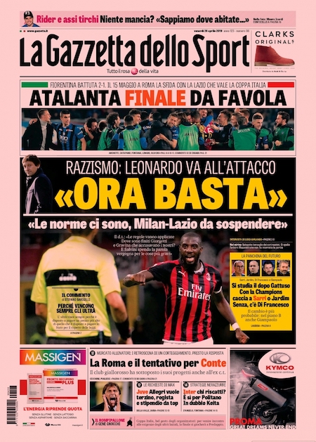 In finale l’Atalanta incontrerà il 15 maggio la Lazio allo stadio Olimpico in gara unica. Nella giornata di mercoledì la Lazio ha battuto il Milan per 1-0 in una partita preceduta da una manifestazione fascista in centro, a Milano, e da alcuni ricorrenti cori razzisti contro i giocatori del Milan Tiémoué Bakayoko e Franck Kessié. “Milan-Lazio era da sospendere”, sono le parole attribuite dalla Gazzetta dello Sport a Leonardo, direttore generale dell’area tecnico-sportiva del Milan.