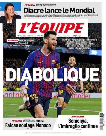 Per la festa del 1° maggio, come di consueto, i quotidiani italiani non vanno in stampa e non sono in edicola, neppure quelli sportivi. Sui giornali sportivi esteri o sulle sezioni sportive dei principali quotidiani esteri la notizia principale è la vittoria del Barcellona in Champions League.