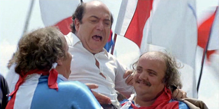 L’allenatore nel pallone è il film “cult” in programma stasera in tv su Iris, canale gratuito dedicato al cinema, visibile sul 22 e in HD sul 522. È la più famosa commedia italiana sul calcio, interpretata dall’attore Lino Banfi – nella parte di Oronzo Canà – e diretta nel 1984 dal regista Sergio Martino. Da allora a oggi la popolarità del film L’allenatore nel pallone, a cavallo tra due diverse generazioni, è rimasta sostanzialmente immutata. Forse è persino cresciuta.