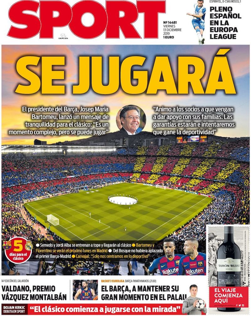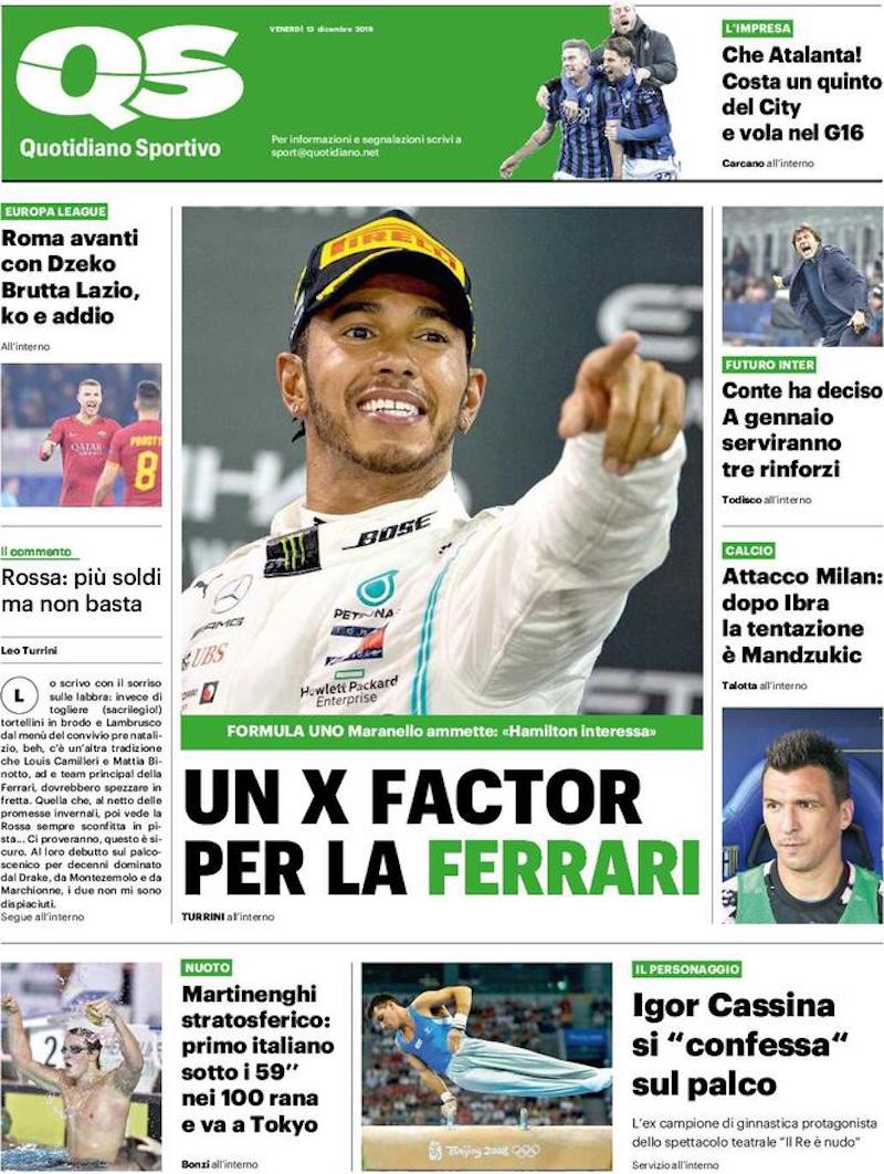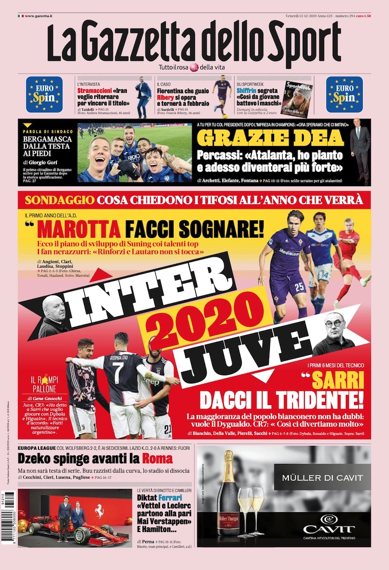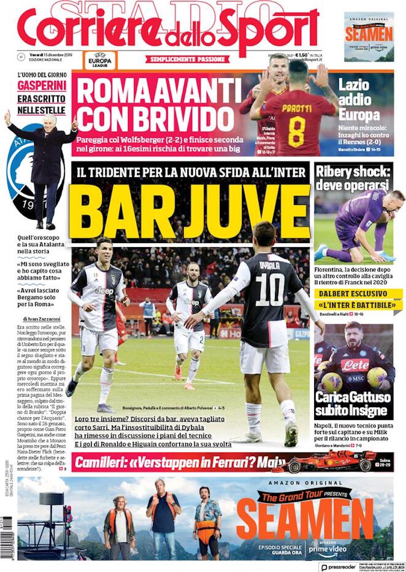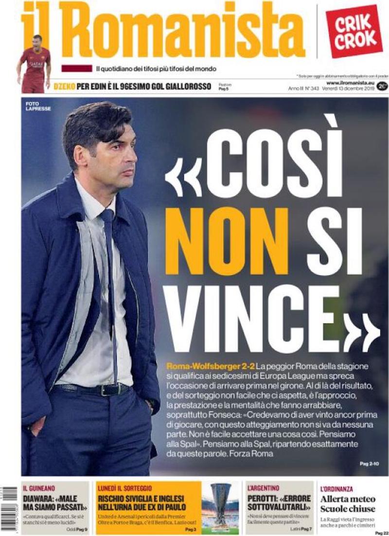Altro spazio in prima pagina è dedicato ai risultati dell’ultima giornata della fase a gruppi di Europa League. Con un pareggio 2-2 la Roma è riuscita a ottenere la qualificazione ai sedicesimi, nonostante l’insoddisfazione del suo allenatore Paulo Fonseca per il deludente approccio alla partita. La Lazio, che aveva possibilità comunque molto limitate di passare il turno, ha perso 2-0 in trasferta contro il Rennes ed è stata eliminata.