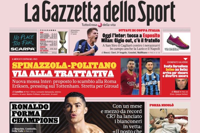 La Gazzetta dello Sport introduce oggi un’ulteriore trattativa dell’Inter, quella con la Roma per avere Leonardo Spinazzola in cambio di Matteo Politano, giocatore che alla Roma potrebbe ora tornare utile in seguito al grave infortunio del titolare Nicolò Zaniolo.