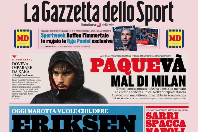 Intanto il ventiduenne centrocampista brasiliano del Milan Lucas Paquetá ha chiesto e ottenuto di non essere convocato per la partita di stasera contro il Brescia. La sua posizione nel club viene definita sempre più incerta dagli addetti, e in caso di offerte congrue il Milan potrebbe lasciarlo andare già in questa sessione di mercato.