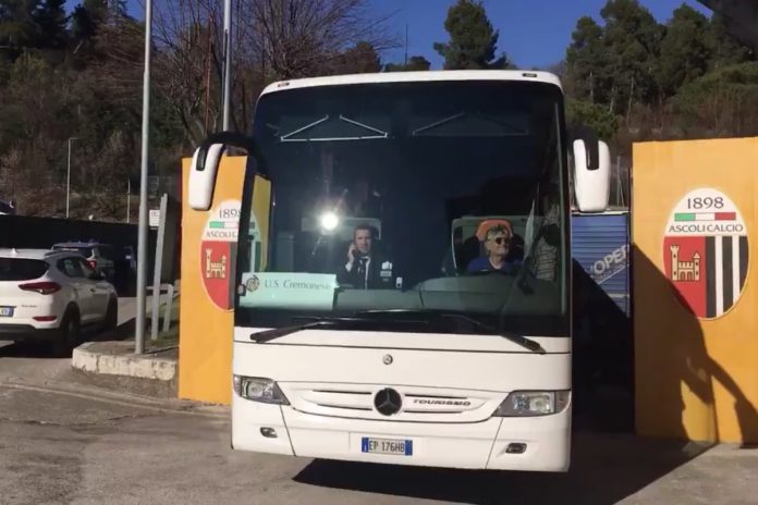 #ASCCRE I ragazzi alle 15 lasciano lo stadio di Ascoli #forzagrigiorossi @Lega_B pic.twitter.com/3g5cujZkRu