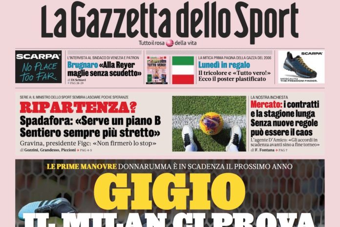 Il principale argomento trattato sulle prime pagine dei quotidiani sportivi nazionali di oggi è un intervento del ministro dello Sport Vincenzo Spadafora, ieri, alla trasmissione televisiva “Omnibus” su La7. Spadafora ha definito “molto stretto” il sentiero che potrebbe portare a una ripresa della stagione di calcio in Italia. “Potrebbero essere anche la maggioranza dei presidenti e delle società a chiederci di sospendere, e di prepararsi invece nel migliore dei modi al nuovo campionato”, ha detto Spadafora.