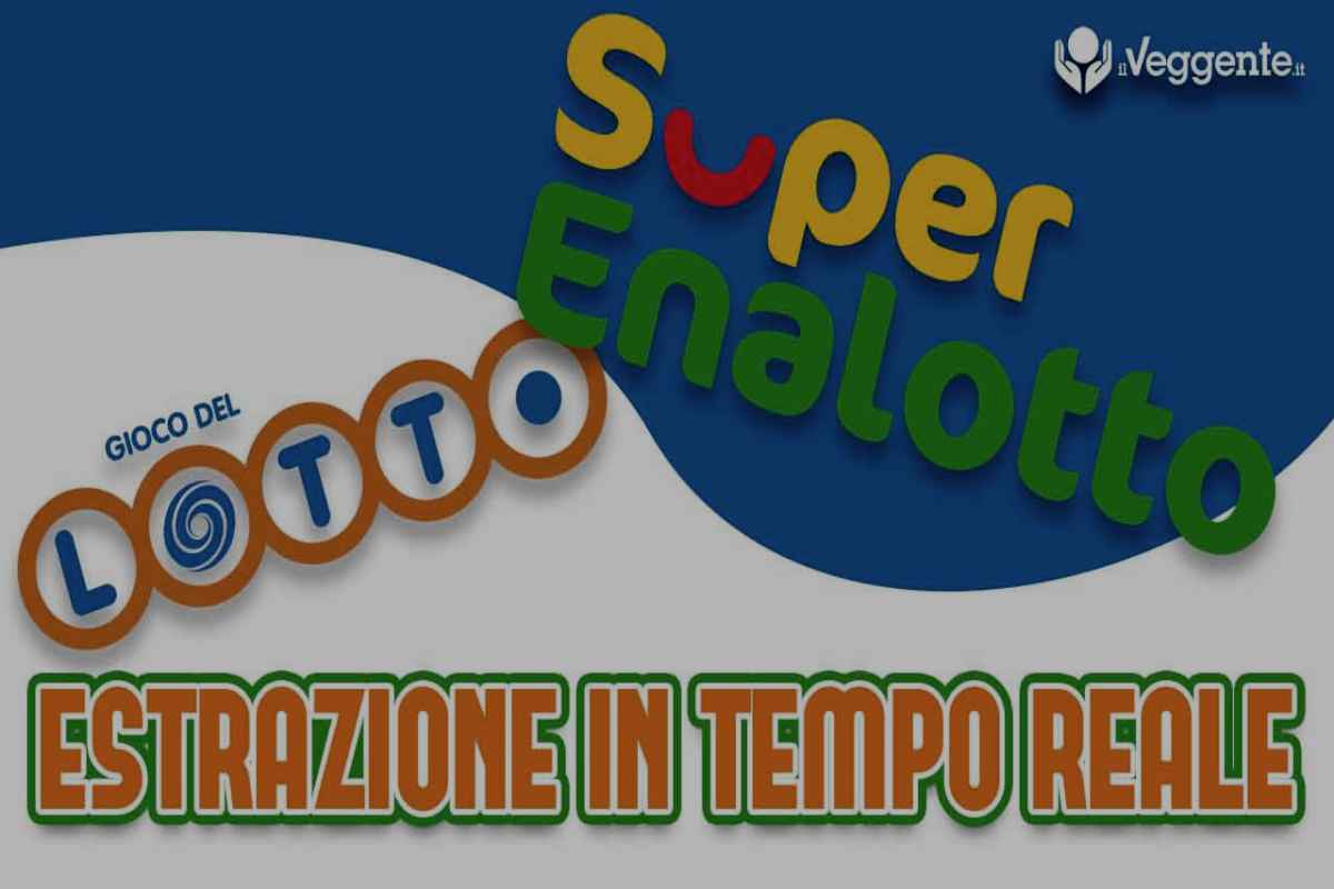 Qui sotto troverete in TEMPO REALE e a partire dalle 20:00 i numeri vincenti del Superenalotto, quelli del Lotto classico, del 10eLotto e del Simbolotto. Li vedrete comparire appena disponibili (premere F5 per aggiornare).