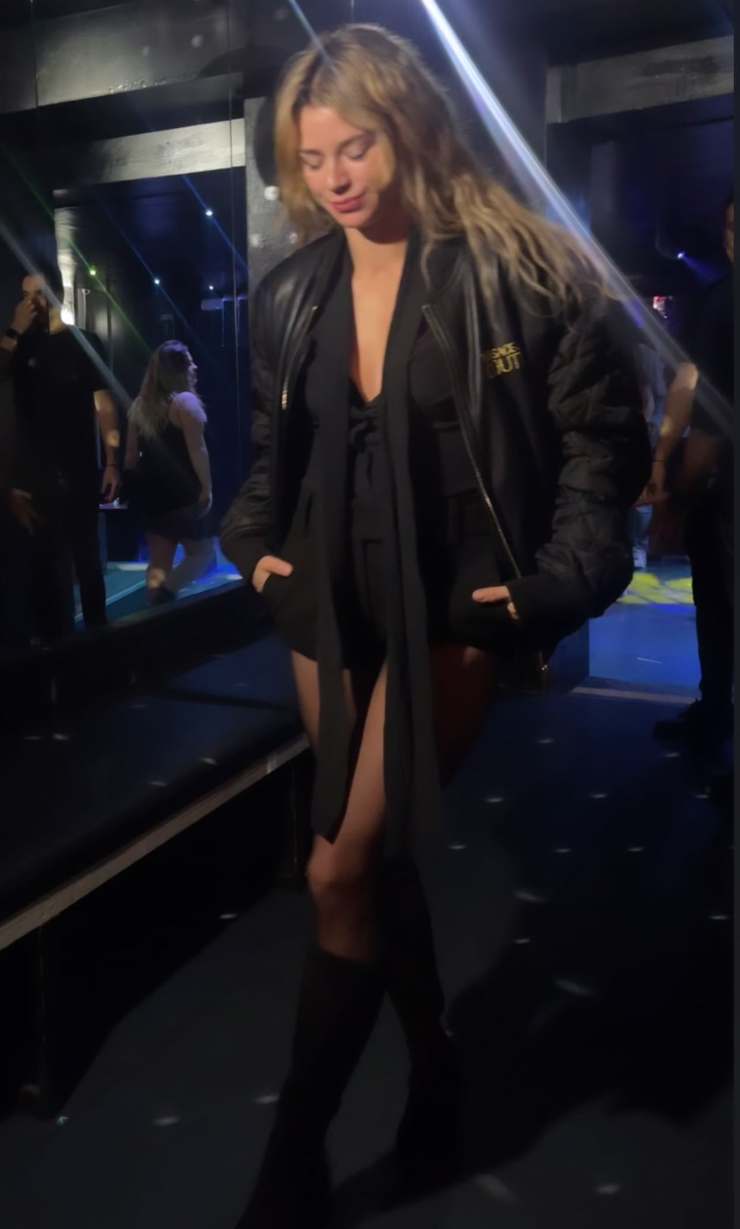 Il look della tennista – come potete vedere dalla foto condivisa tra le stories – è caratterizzato da un abito nero corto, con una scollatura profonda, ed un paio di stivali alti che risaltano il suo meraviglioso fisico. Sono abbinati ad una giacca bomber nera, nettamente in contrasto con lo stile elegante e sensuale del vestito.