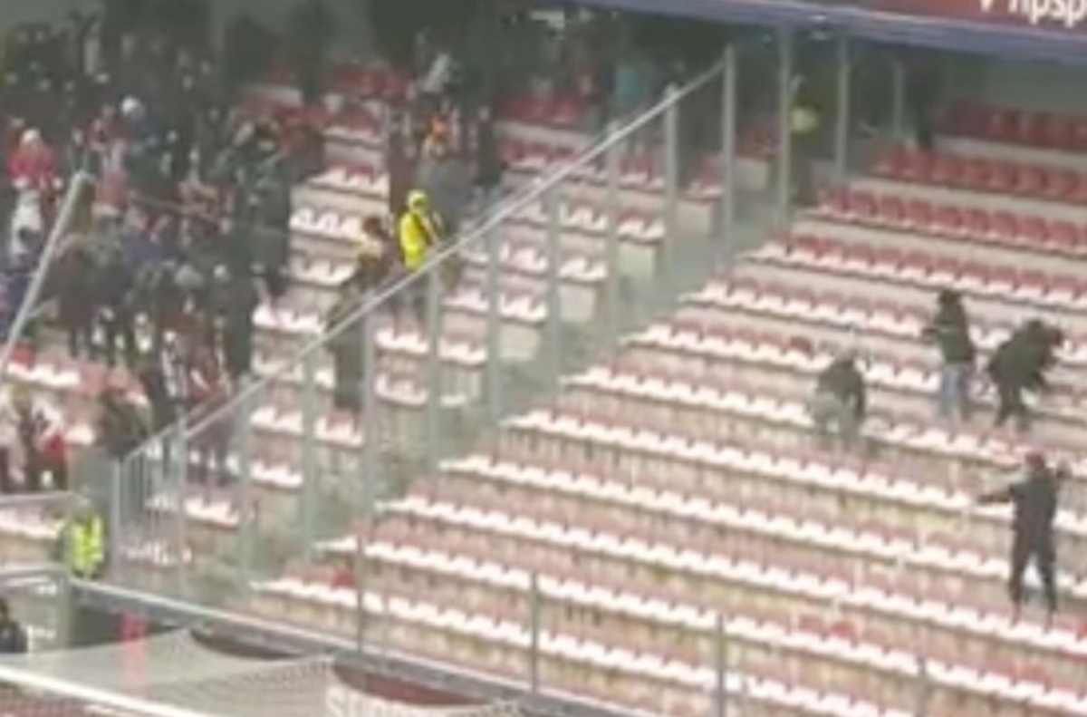 Partita noiosa, nessun problema. Parte la guerriglia sugli spalti. Le temperature gelide hanno aiutato il tutto. Ecco il video di quello che è successo