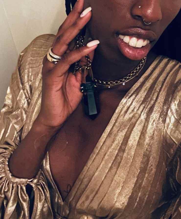 Scintillante e color oro, era caratterizzato da una scollatura vertiginosissima sulla quale la pallavolista, ad un certo punto, ha voluto indugiare. Con la sua telecamera si è scattata un selfie dall’alto che ha infranto migliaia e migliaia di cuori, non fosse altro perché non siamo abituati a questa versione così sexy di Paola Egonu. Ma se di un esperimento si è trattato, allora beh, possiamo dire che sia pienamente riuscito.