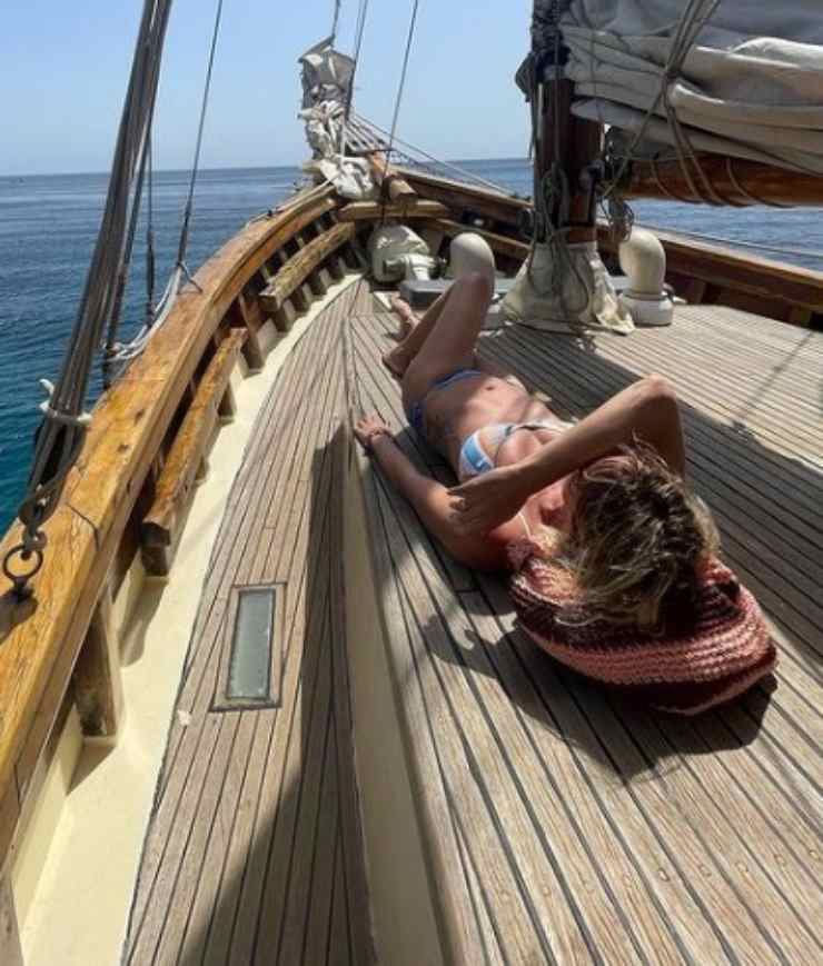 Federica Pellegrini si è fatta immortalare in una splendida goletta d’epoca tutta in legno del 1994. Ma Maby II, che organizza escursioni per un massimo di 12 partecipanti. All’interno della stessa ovviamente ci sono tutti i comfort possibili e immaginabili, ma quello che interessa a Federica è essere ripresa su questa splendida imbarcazione.