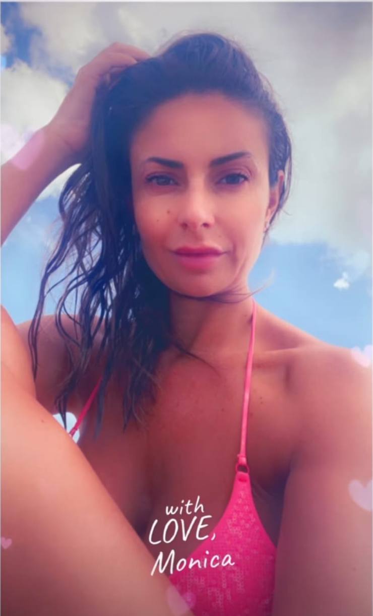 “Con amore, Monica”. Questo il messaggio scritto in rosa da parte della Bertini che accompagna una foto in bikini stupenda, bellissima. Dello stesso colore dei caratteri utilizzati per spedire il messaggio il suo costume. Ma la faccia è una di quelle che forse realmente sente vicina la fine dei giorni di vacanza. Almeno un poco la si potrebbe leggere così.
