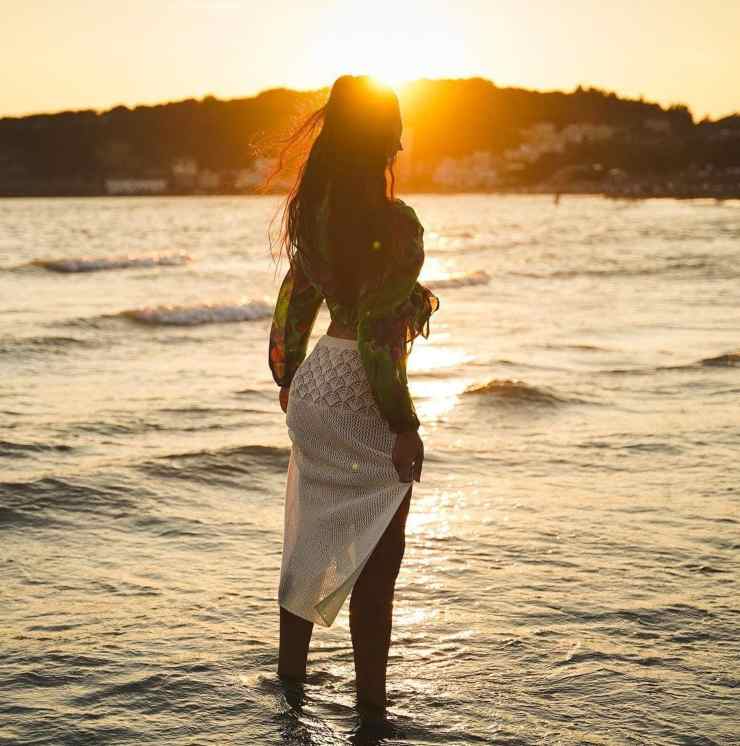 La Jovanovic è in posa sul bagnasciuga, al tramonto, con indosso un micro-top e una longuette di macramè assolutamente – e deliziosamente – illegale. La luce la rende trasparente, per la gioia dei fan che, ne siamo certi, saranno rimasti estasiati dinanzi a tanta e prorompente bellezza.