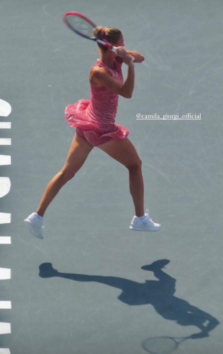 Lo scatto in movimento ha regalato loro una prospettiva molto interessante, nella misura in cui ha permesso di dare una sbirciata veloce a cosa ci fosse sotto quella graziosa gonnellina. Come tutte le tenniste, l’intimo di Camila era rappresentato da un minuscolo pantaloncino tono su tono, perfetto per evitare incidenti di percorso. Anche quello, tuttavia, incorniciava egregiamente il suo lato B.
