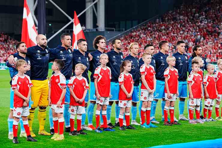 DANIMARCA (4-3-3): Schmeichel; Kristensen, Kjaer, Christensen, Maehle; Hojbjerg, Eriksen, Norgaard; Skov, Hojlund, Wind.