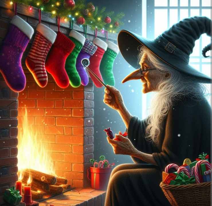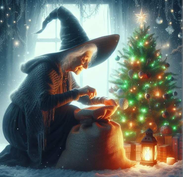 Arriva, dopo una notte trascorsa in volo, a bordo della sua scopa, con un carico grande così di dolciumi e leccornie di ogni tipo. Nonché di carbone, ché mica siamo tutti così bravi da meritare cioccolatini e caramelle. E quando riparte porta via con sé tutta la magia del Natale, lasciandoci a fare i conti con la malinconia.