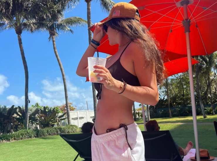 Lei lo sa e non perde occasione, alla luce di ciò, per mettersi un po’ in mostra sui social. Come nello scatto in cui indossa la parte superiore di un bikini con un pantalone a vita bassissima, volutamente calato sui fianchi. Un outfit apparentemente casuale ma, in realtà, muy muy sexy.