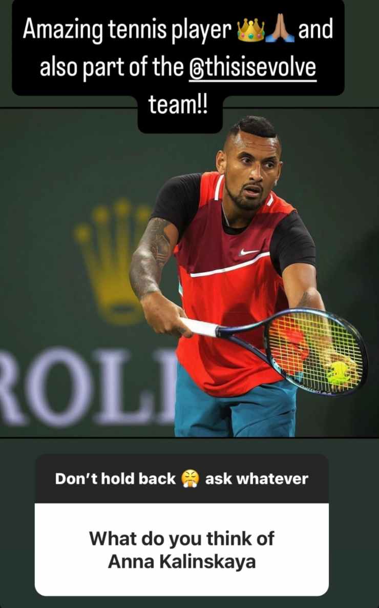 Il fatto che avessero smesso di seguirsi su Instagram sembrerebbe suggerire, tuttavia, che la loro relazione non sia finita nel migliore dei modi. Così come, d’altra parte, si era conclusa malissimo anche un’altra precedente relazione della Kalinskaya: quella, cioè, con Nick Kyrgios, il bad boy australiano che è fuori dal Tour per infortunio, da tempo ormai immemore, e che negli ultimi mesi si è fatto promotore di una vera e propria campagna anti-Sinner per via della vicenda legata al Clostebol.