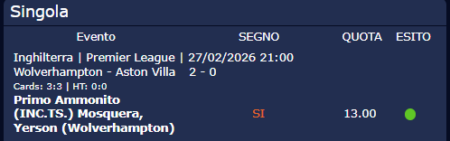 ISCRIVITI al canale TELEGRAM per ricevere GRATIS le notifiche con altri pronostici esclusivi come questo vincente di ieri su MARCATORI, TIRI E AMMONITI: CLICCA QUI