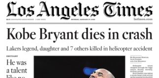 Tutti i maggiori quotidiani internazionali hanno Kobe Bryant in prima pagina, dopo la sua tragica morte in un incidente in elicottero.