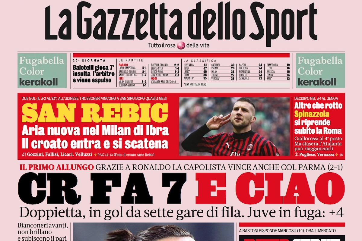 La prima “fuga” della Juventus e gli altri risultati della ventesima giornata di Serie A, oggi sui giornali sportivi.