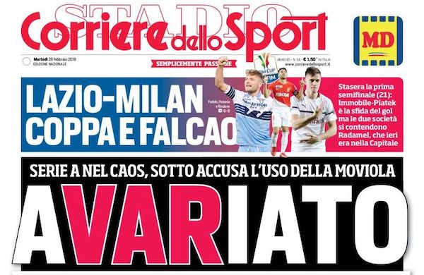 L'intervento di Marotta sull'errore dell'arbitro Abisso in Fiorentina-Inter e le ultime su Lazio-Milan di Coppa Italia, sulle prime pagine.