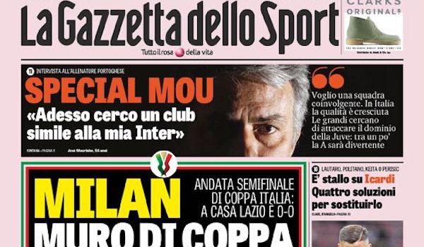 Il pareggio per 0-0 tra Lazio e Milan, gli apprezzamenti di Mourinho per l'Inter e il passaggio di Brendan Rodgers al Leicester.
