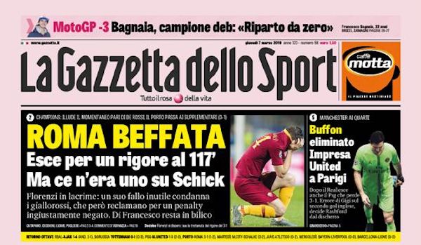 L'eliminazione della Roma contro il Porto e l'altro clamoroso risultato nel ritorno degli ottavi di Champions League giocati ieri sera.
