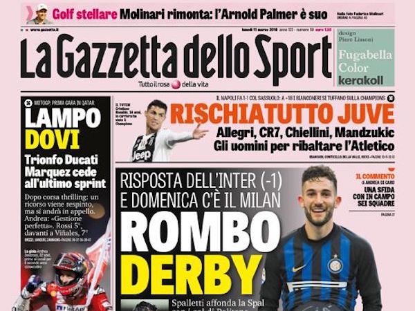 Le prime pagine dei giornali sportivi di oggi, mercoledì 13 marzo